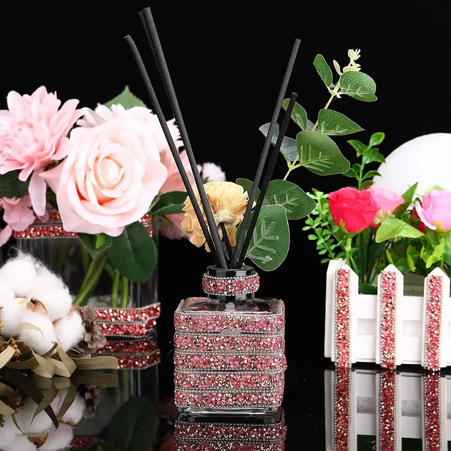 strass tejpen har trekantiga små strass stenar gjorda av resin, de är lätt att klippa med sax och du kan fästa dit tejpen på alla material.