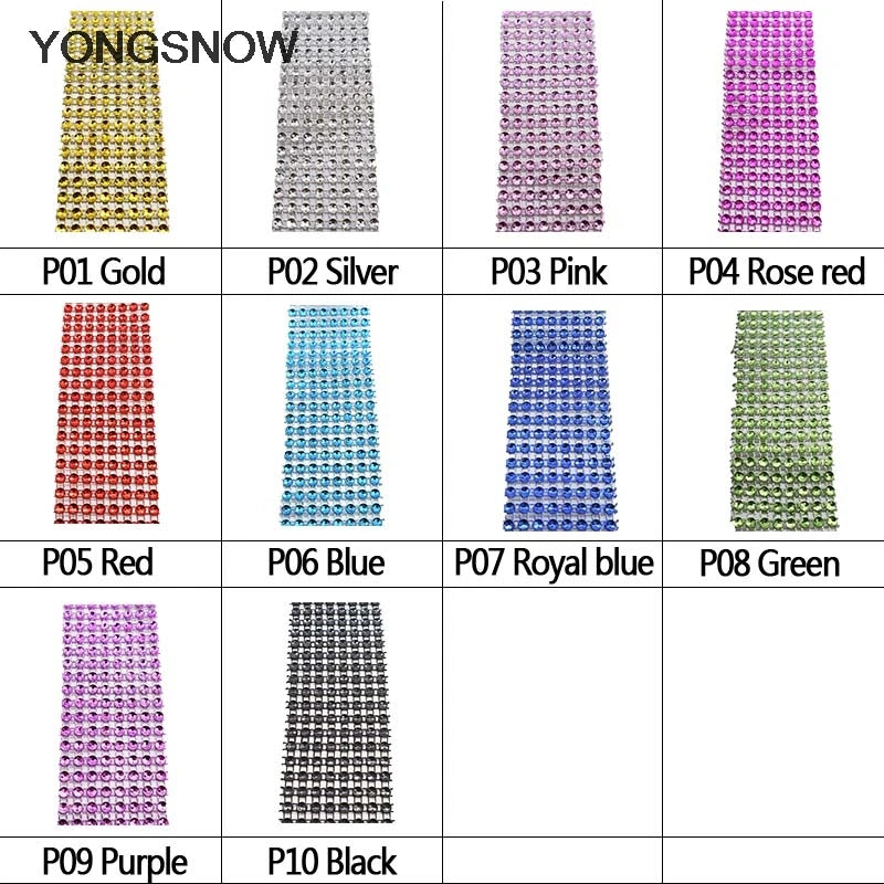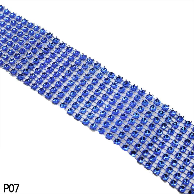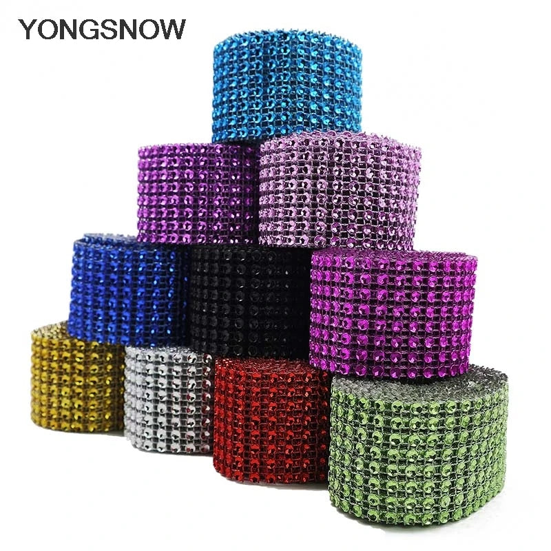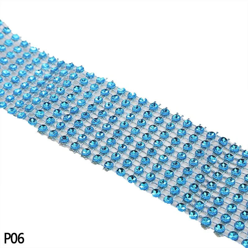 Ribbon with rhinestones that is 4cm wide and can be chosen in lengths of 1.8M and 4.5M long and can be chosen from the colors Blue Light Blue Silver Green Red Purple Light Purple Black and Gold.