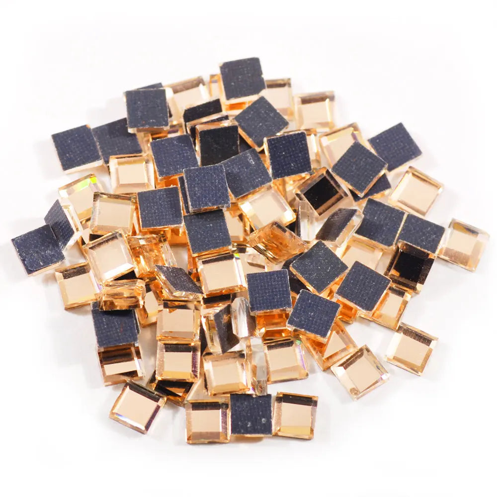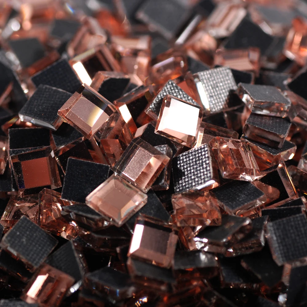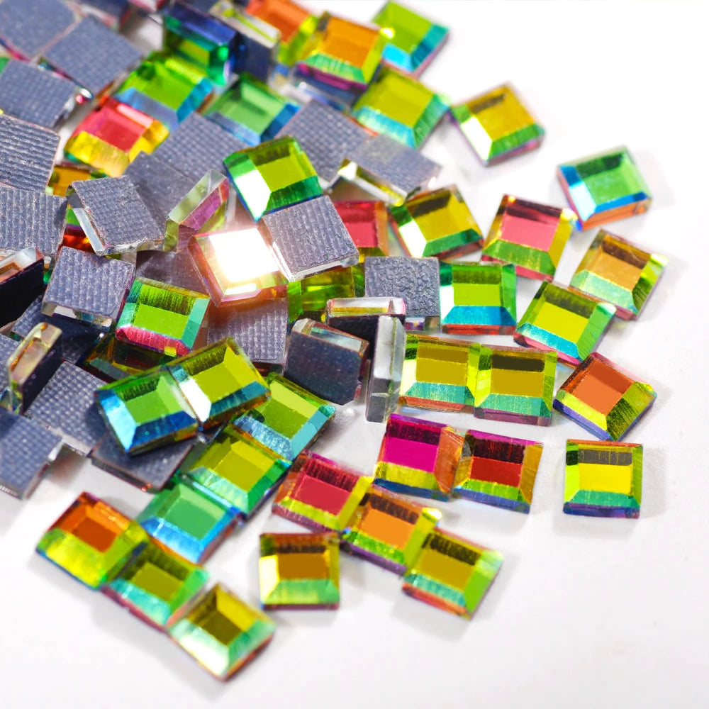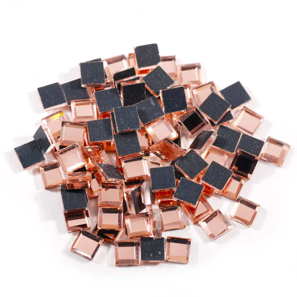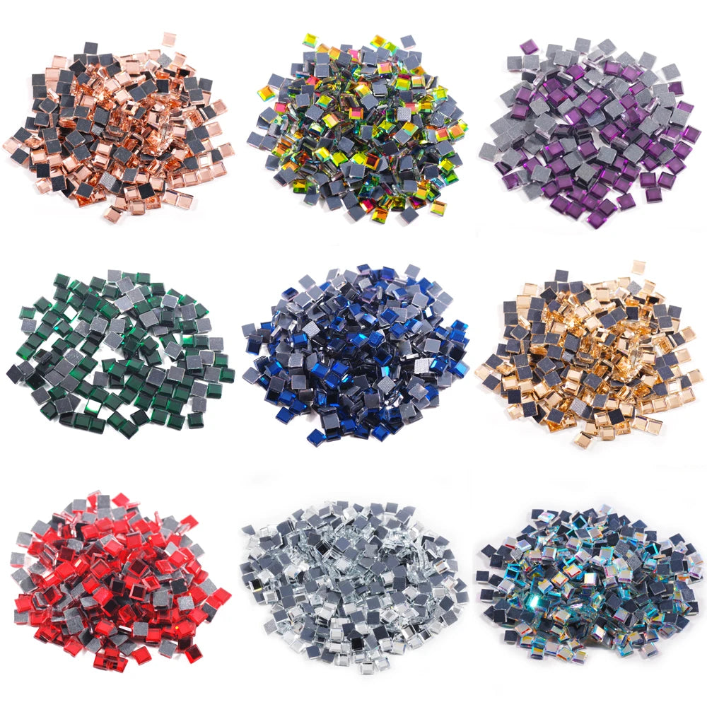 rhinestone plates hot fix small 4x4mm size you can glue but also use iron if they are to be on fabric. There are 11 different colors to choose from and are 200pcs in the package.