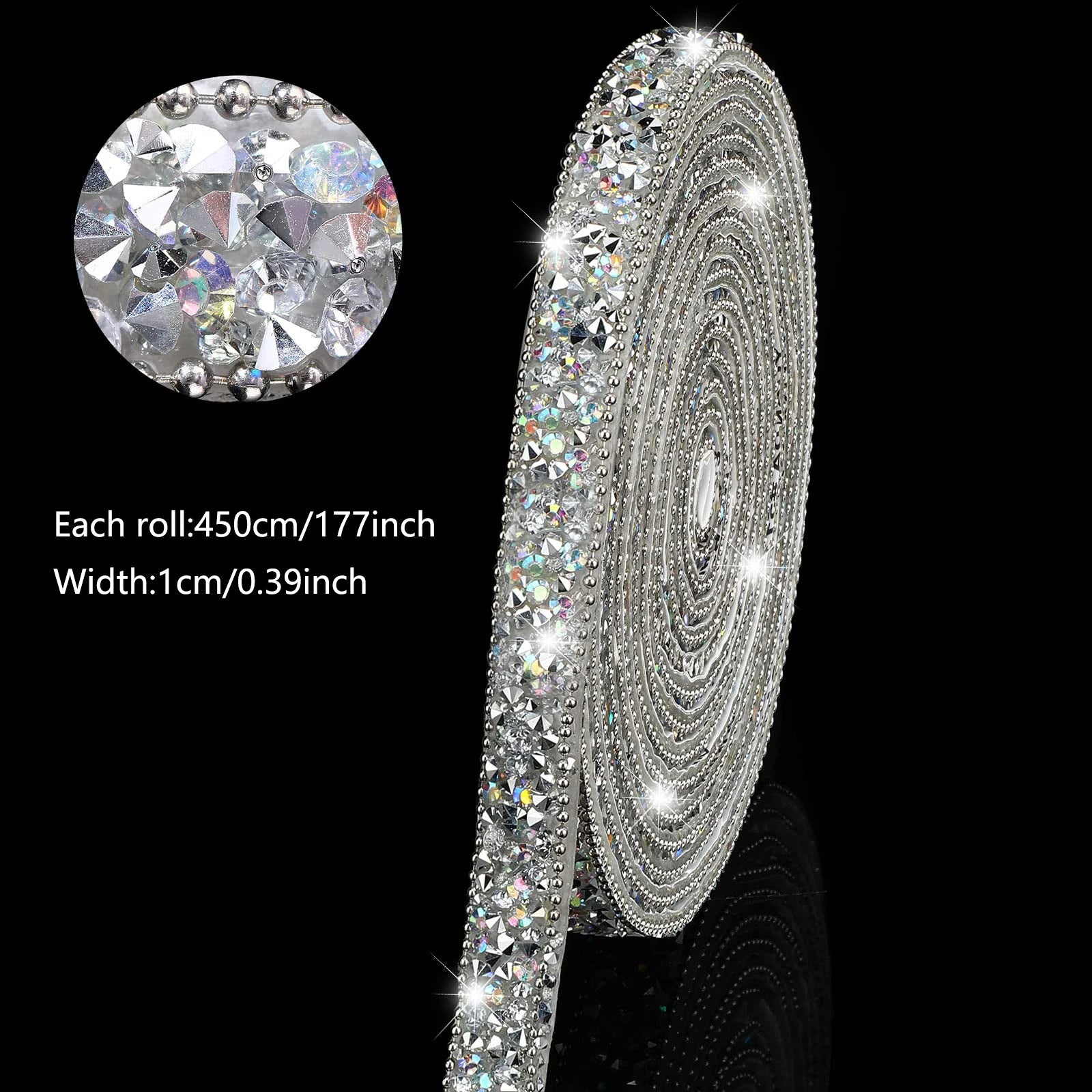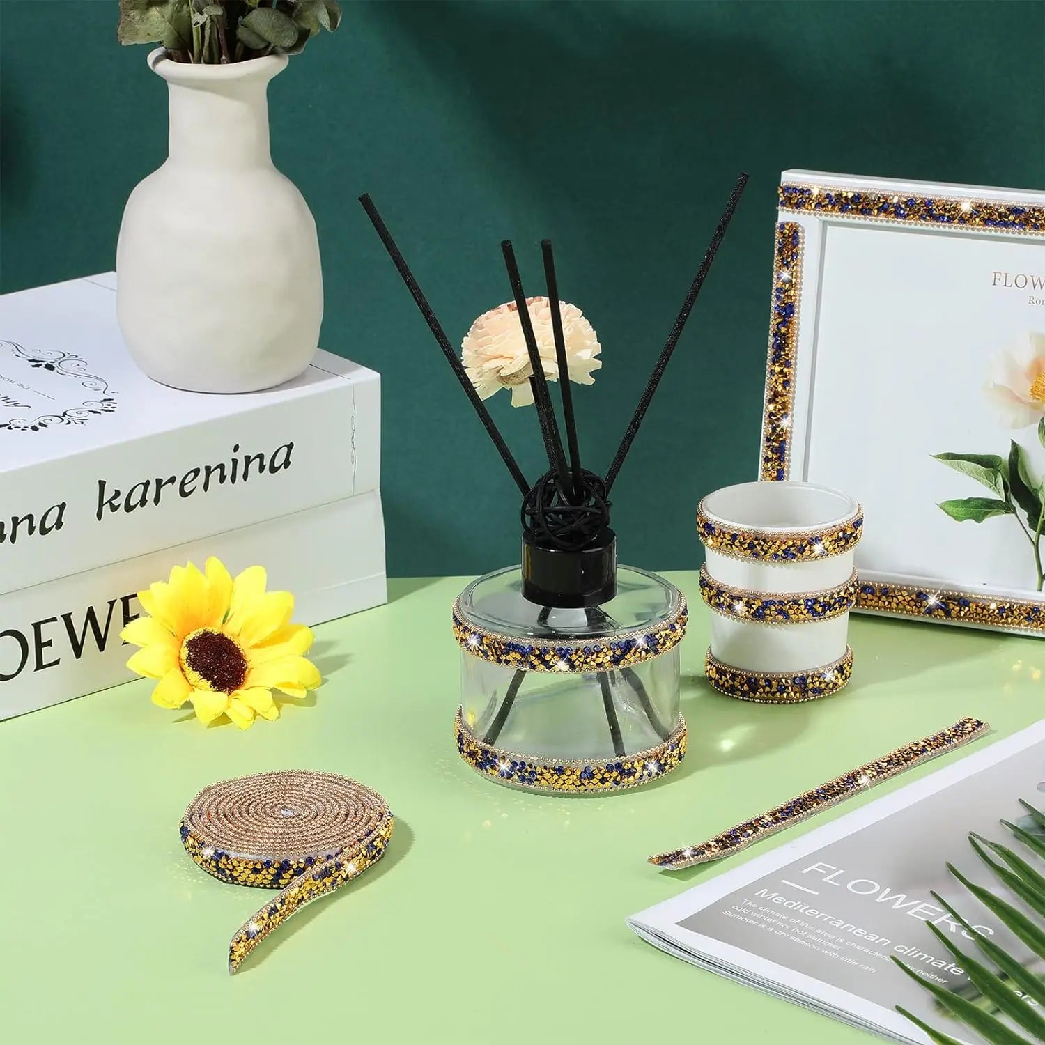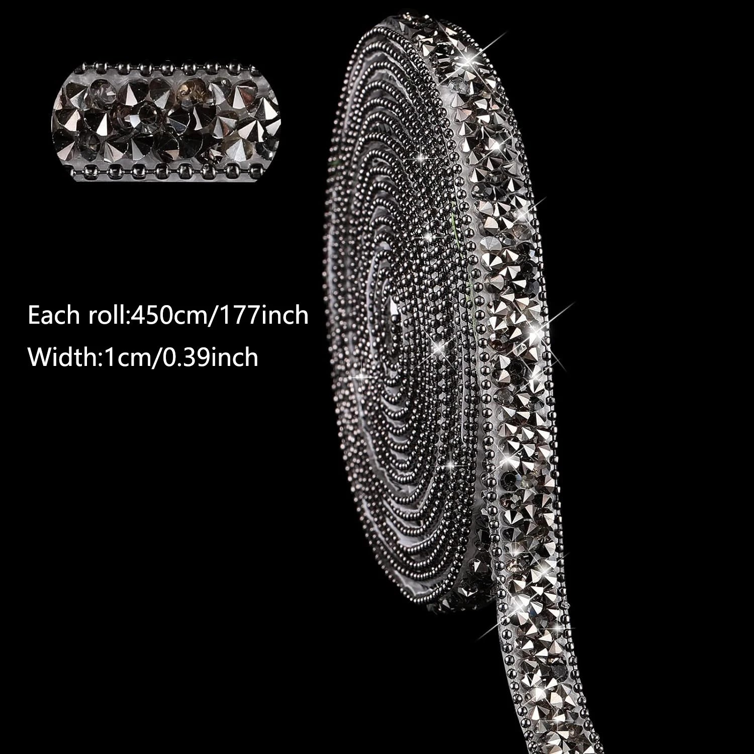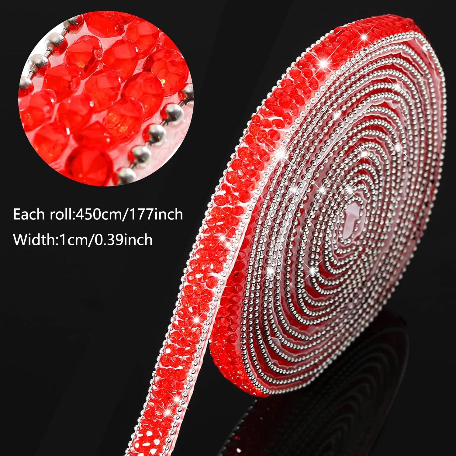 Rhinestone tape that is 1cm wide and comes in a length of 4.5M long where the material is Resin and can be chosen in 10 different colors. Rhinestone tape that has a ready-made glued back where you remove the paper that sits over the adhesive and then you just have to attach the tape where the tape can be attached to all materials. Easy to cut to the size you want.