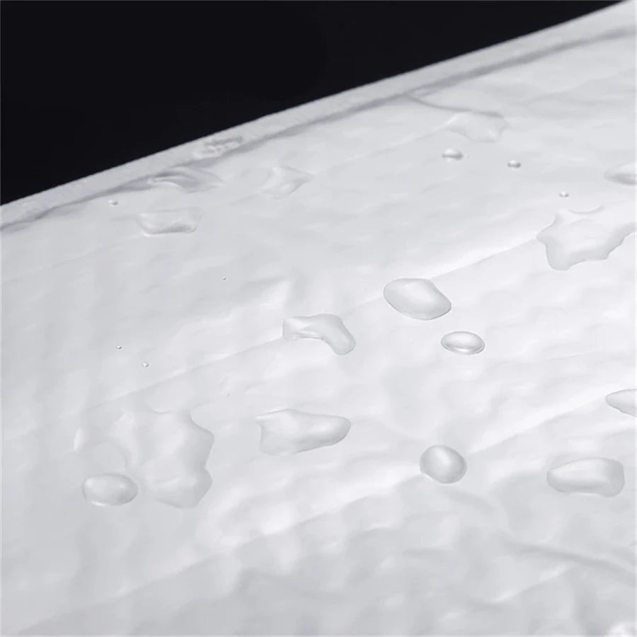 Pack of 50 padded envelopes in white with bubble wrap on the inside and plastic on the outside.