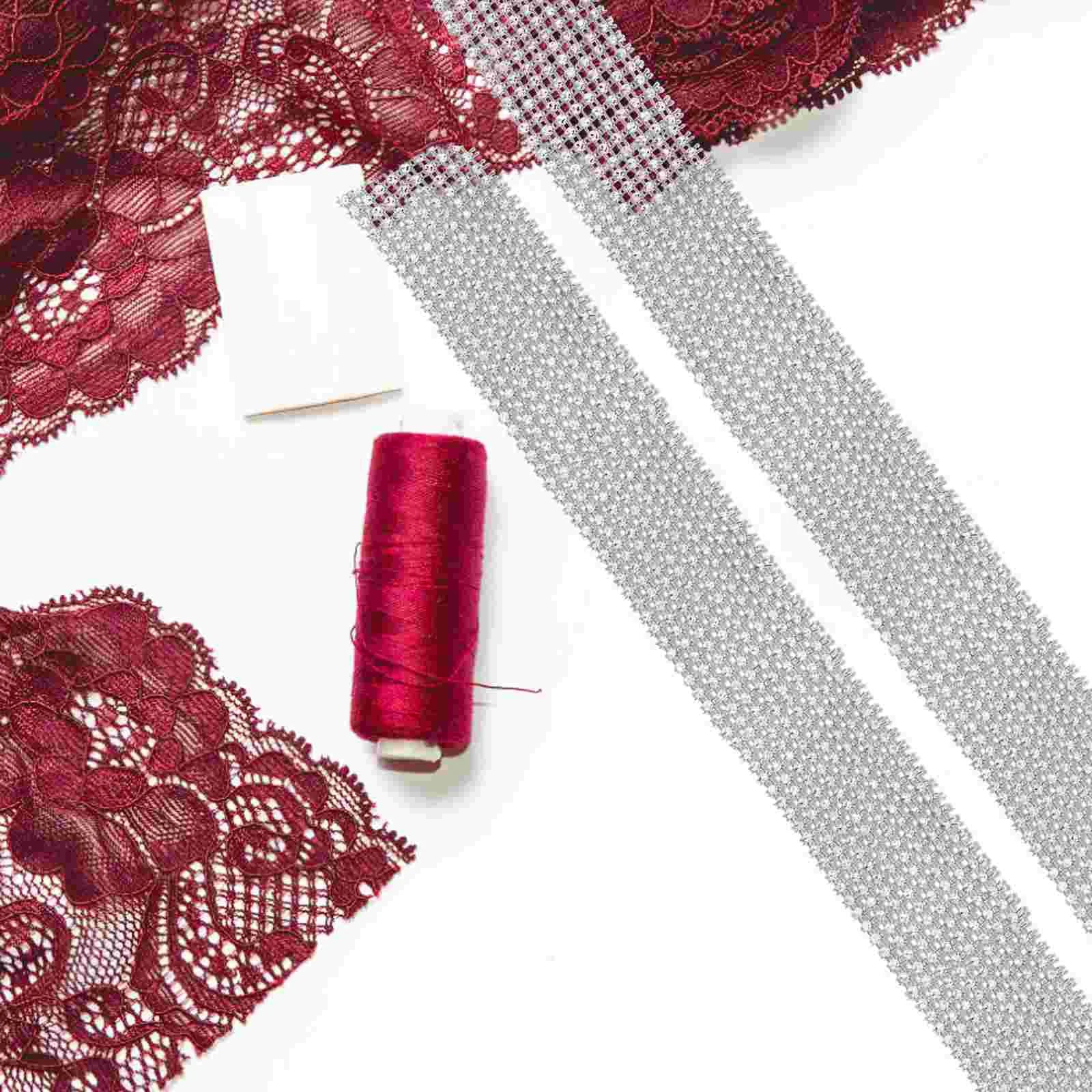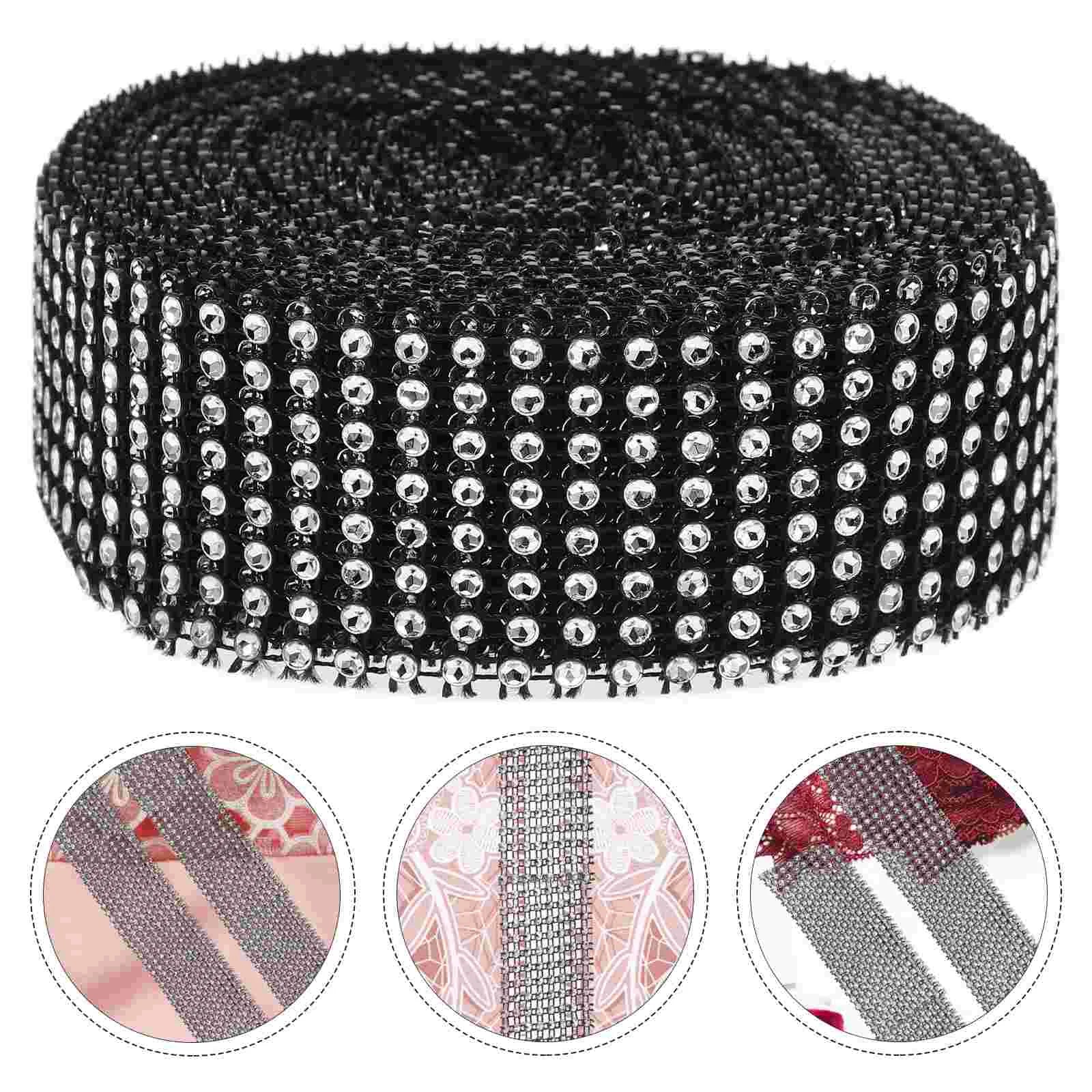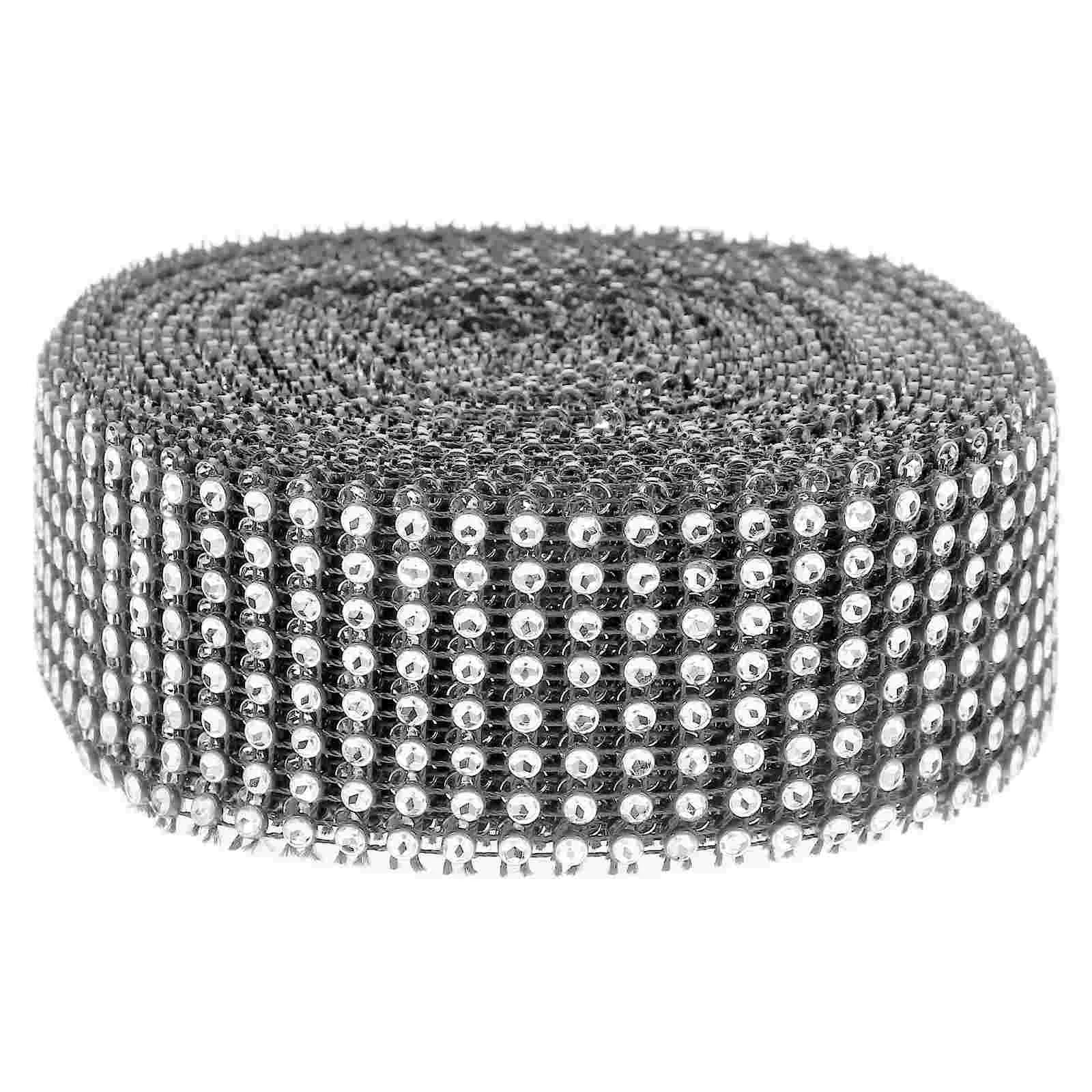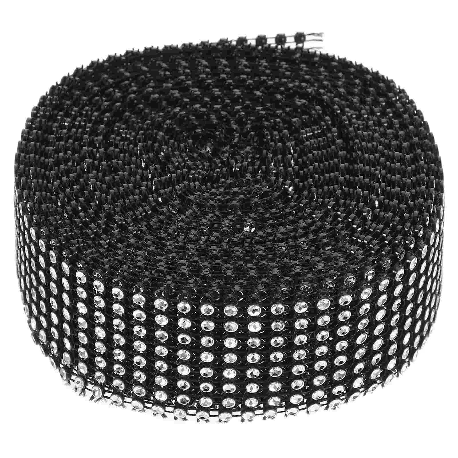 Rhinestone ribbon that is 10cm wide and 9m long that is black and has silver rhinestones.