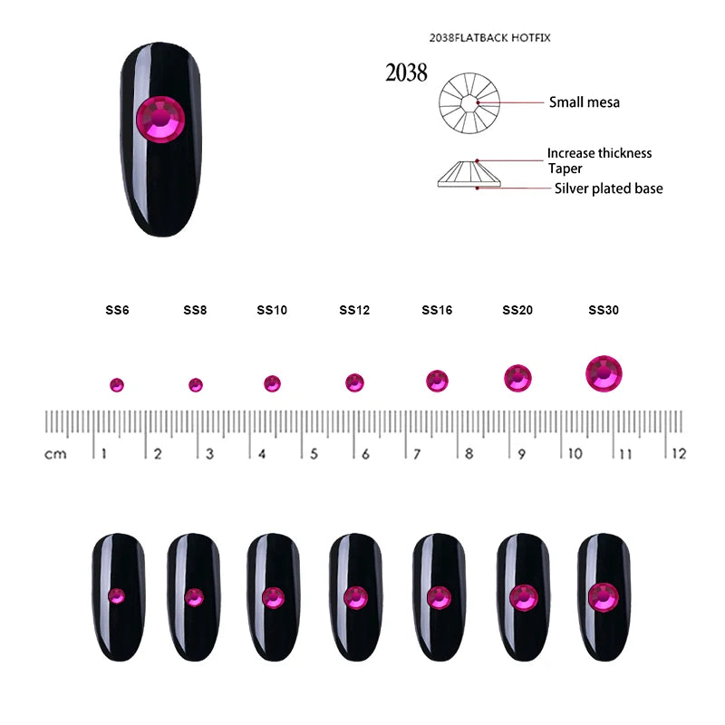 Strass stenar med platt baksida och facetterad framsida i cerise rosa färg som du kan välja förpackningar i olika storlekar mellan 1.5mm-6mm , se bild för alla mått.