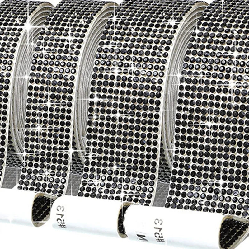 4 rows of rhinestones and 91cm long rhinestone tape in 18 different colors and patterns. To clearly see what each color option looks like, you can click on the different color options and an image will appear for each choice that belongs to that color. Rhinestone tape has a ready-made adhesive back that you can easily attach when you have removed the paper that sits over the adhesive and the tape adheres to the materials.