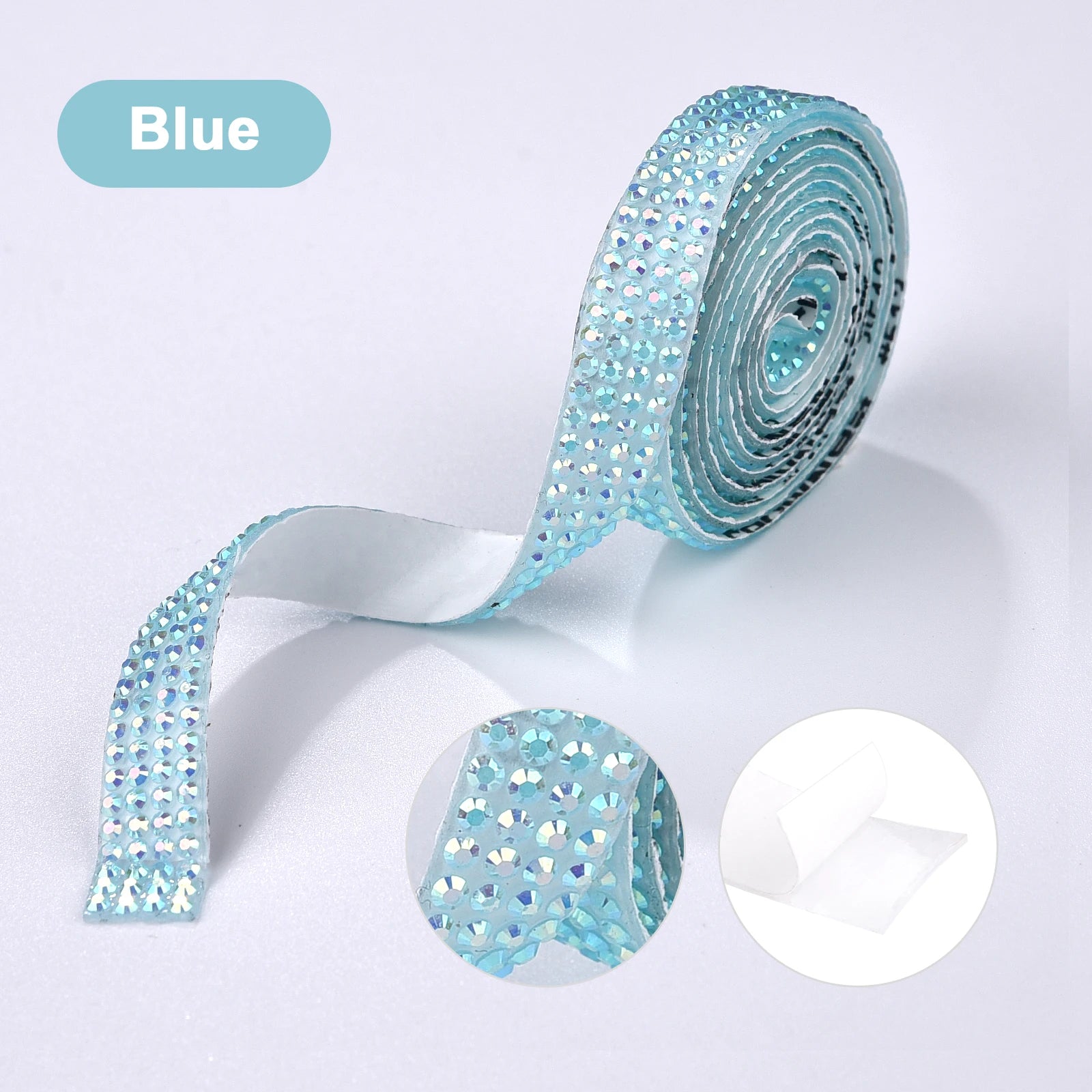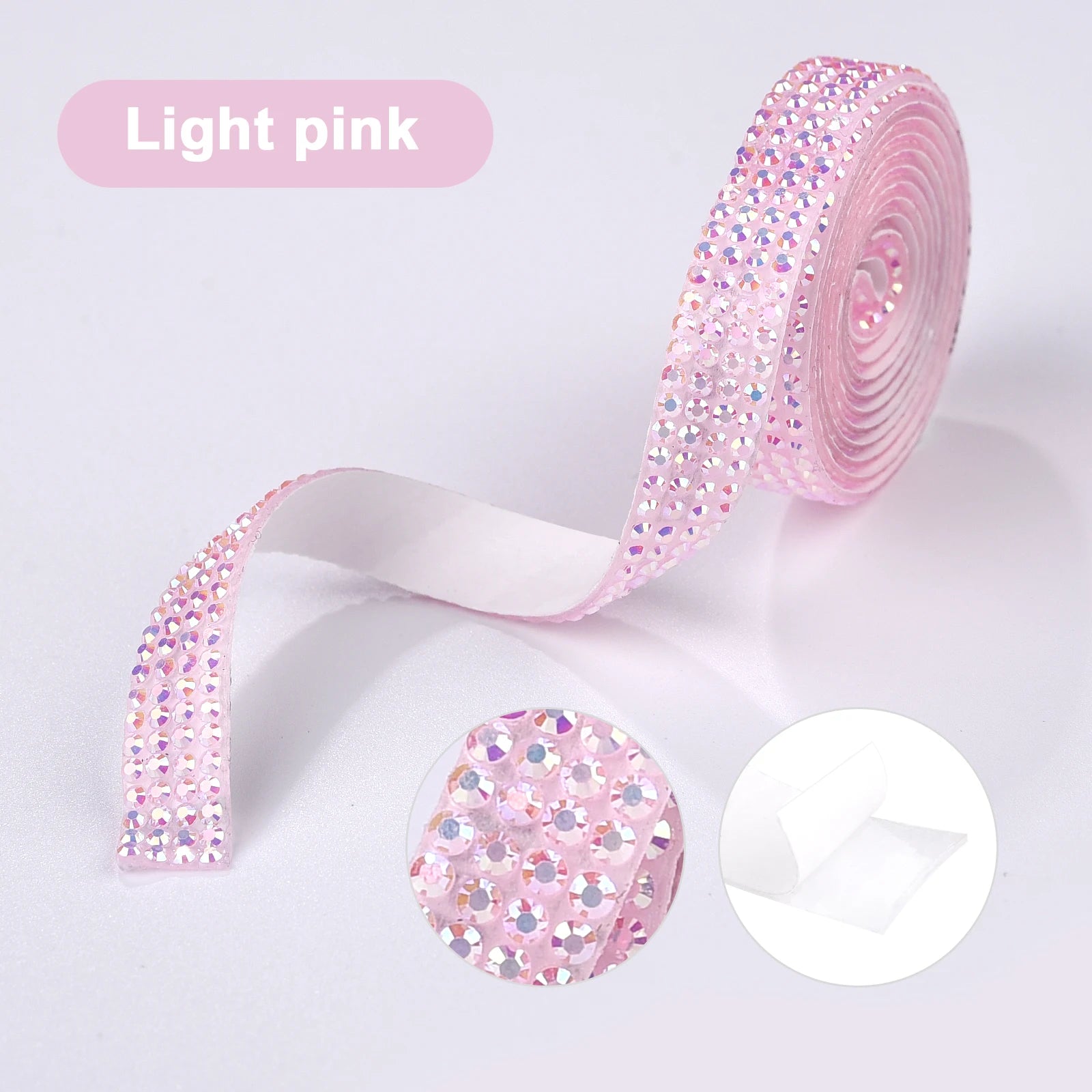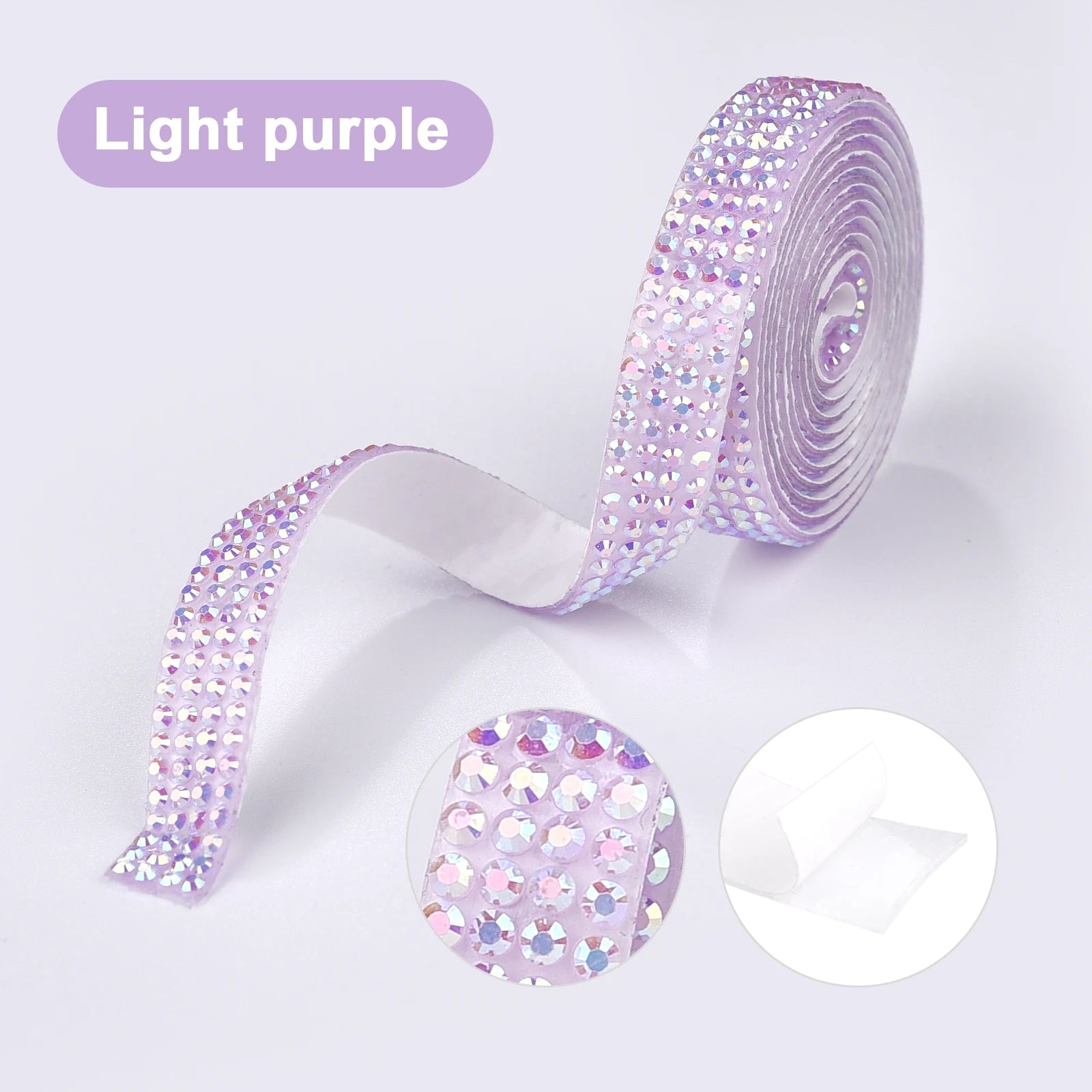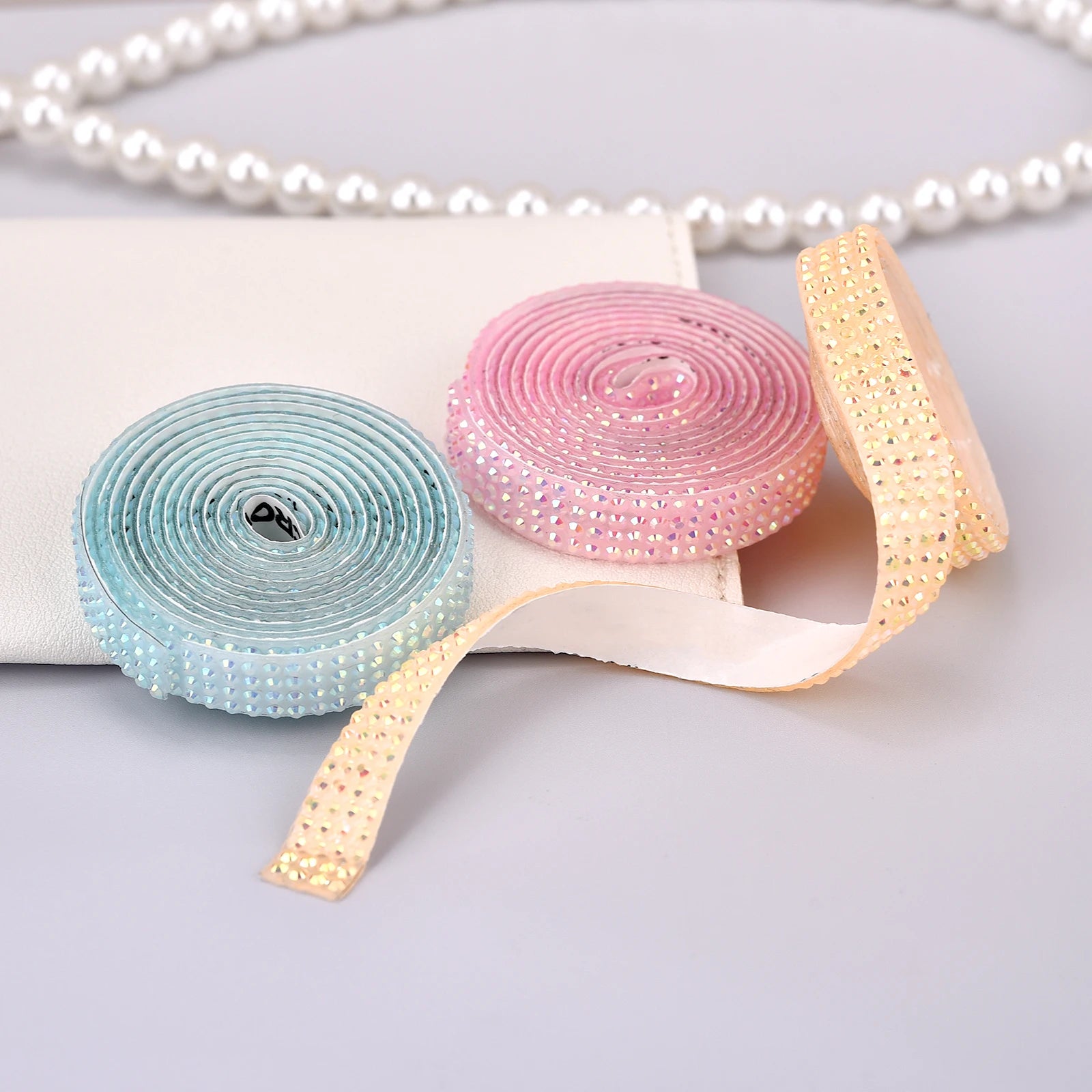 Rhinestone tape in lovely light pastel colors that is 0.9cm wide and 91cm long. Available in twelve different shades.