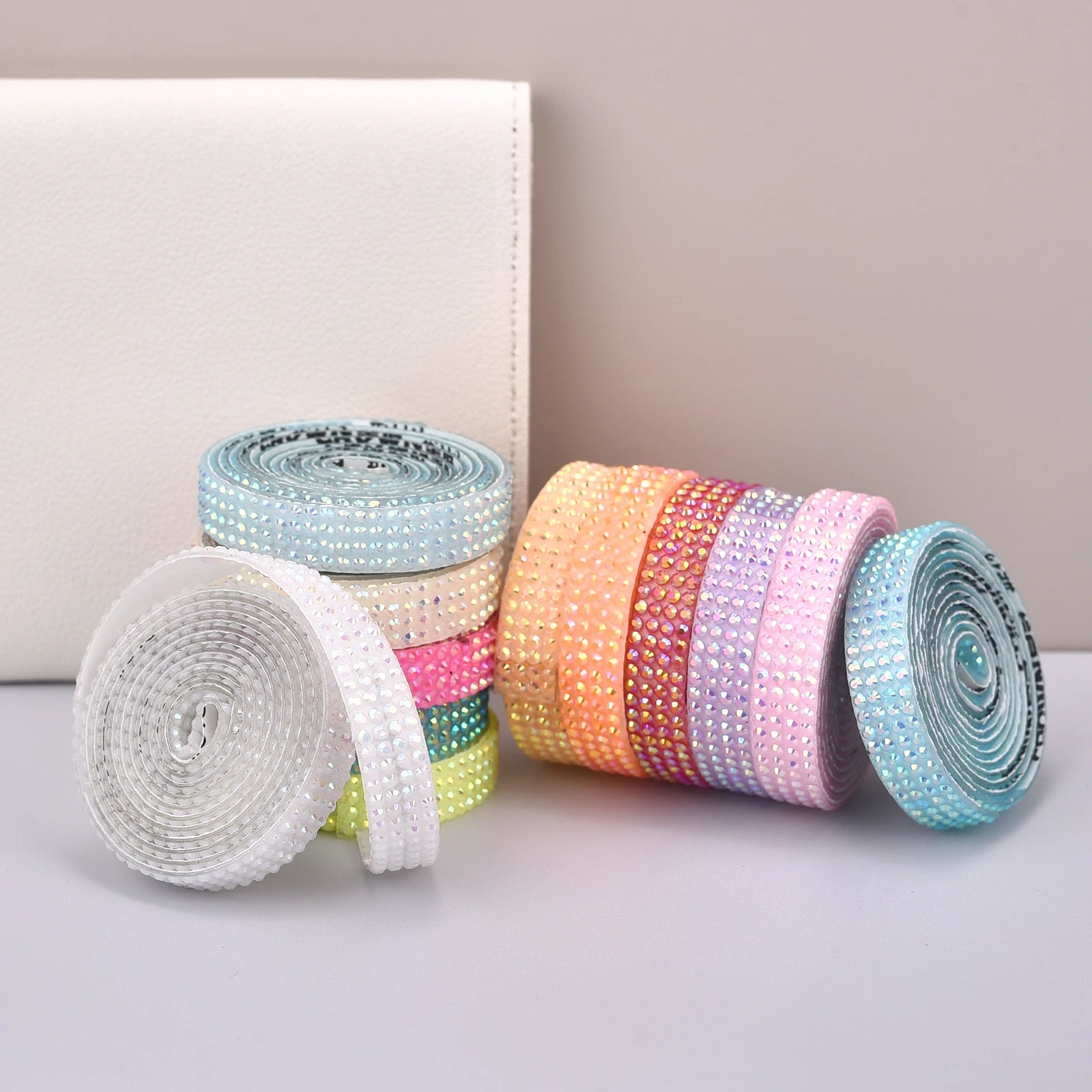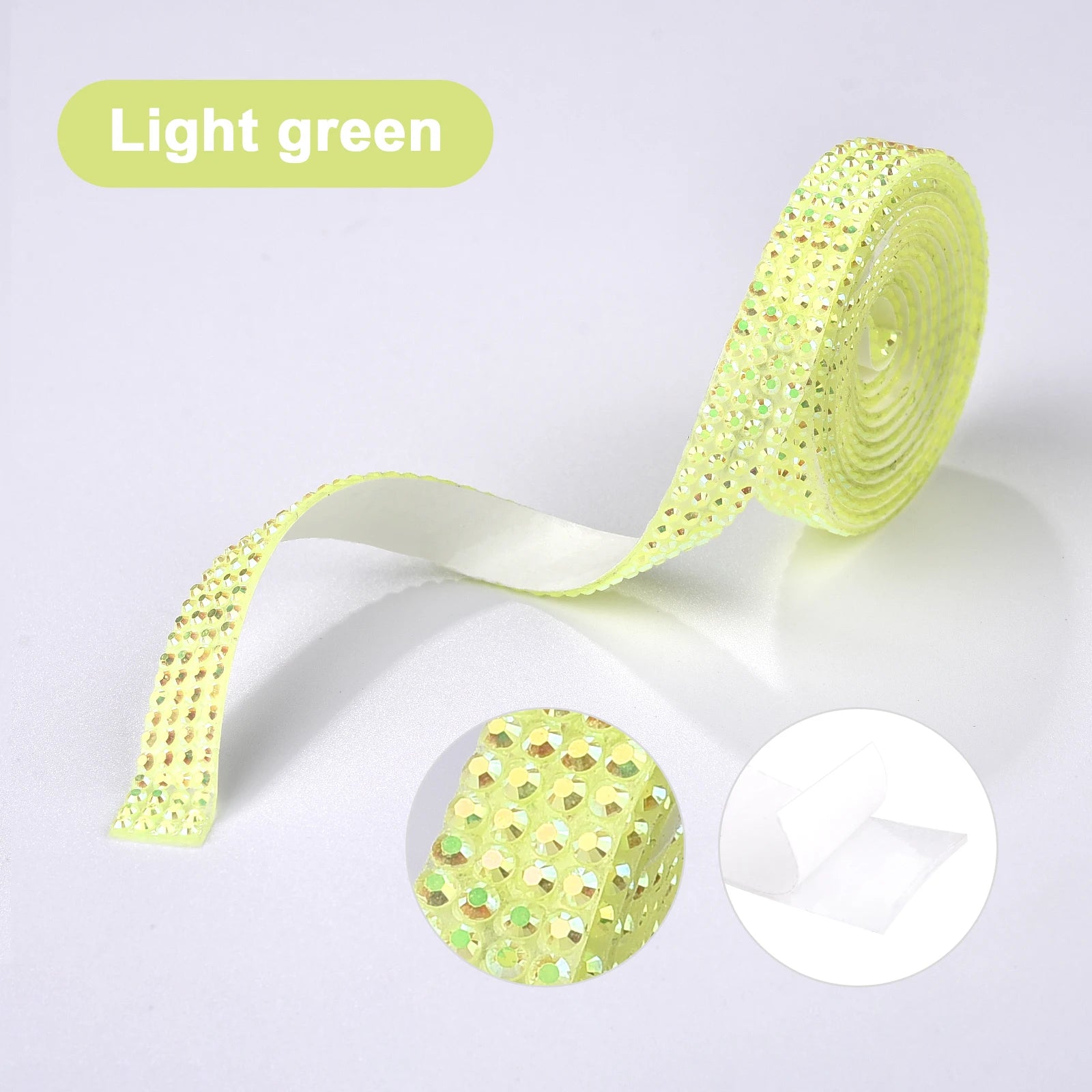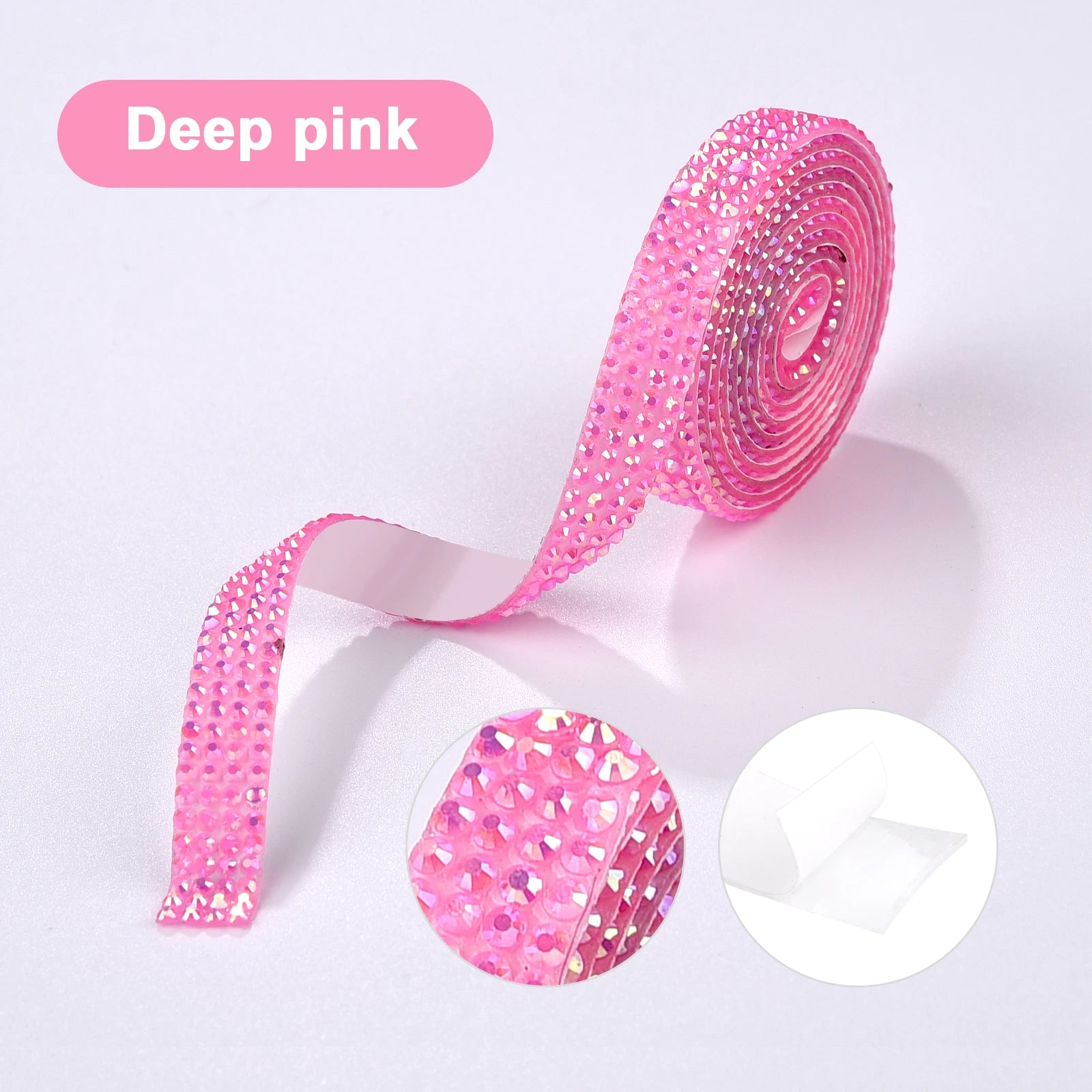 Rhinestone tape in lovely light pastel colors that is 0.9cm wide and 91cm long. Available in twelve different shades.