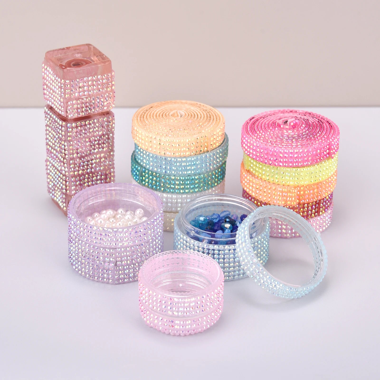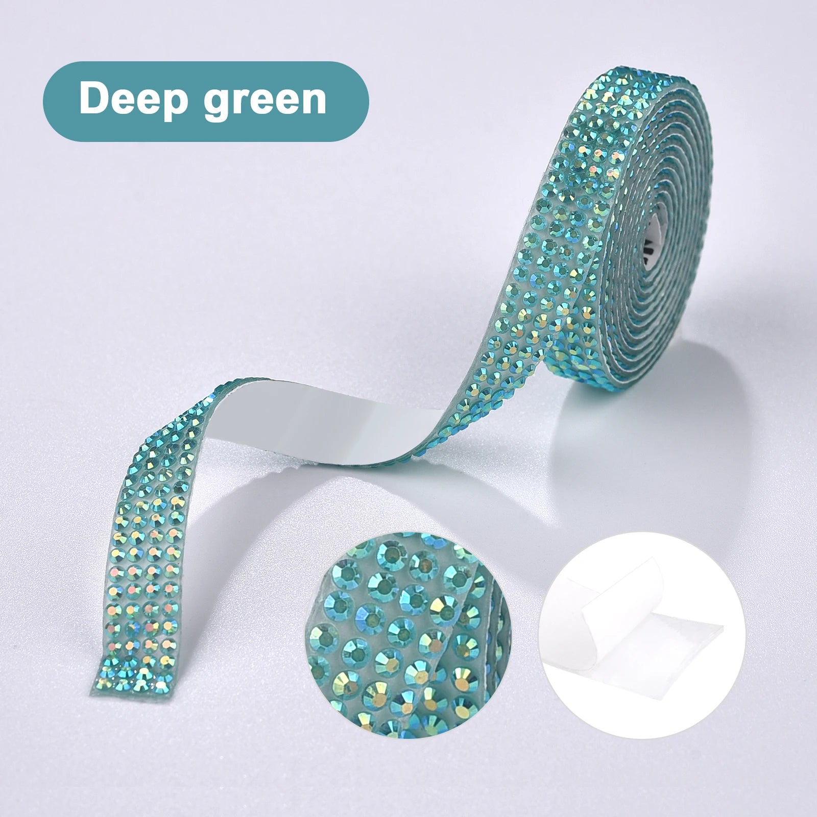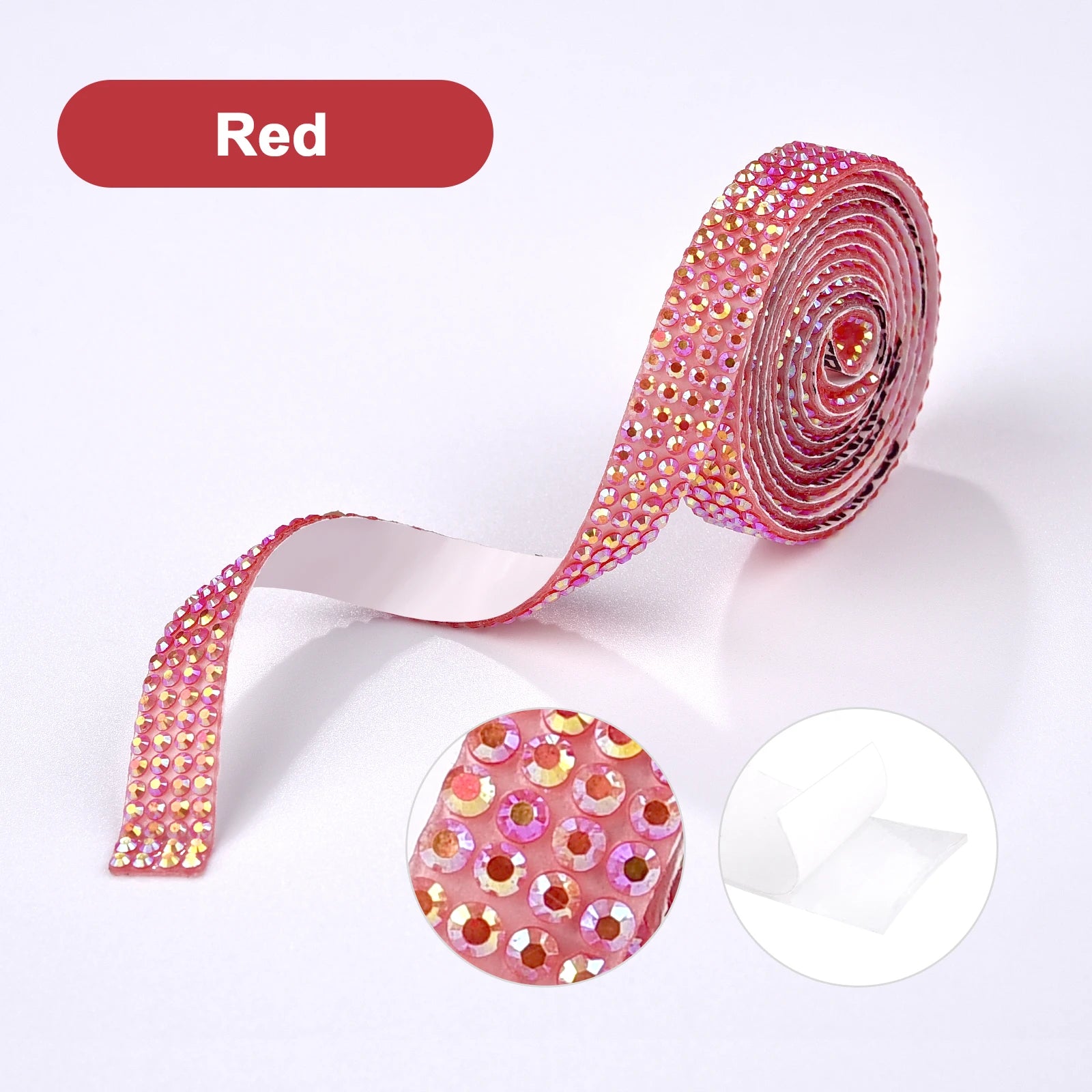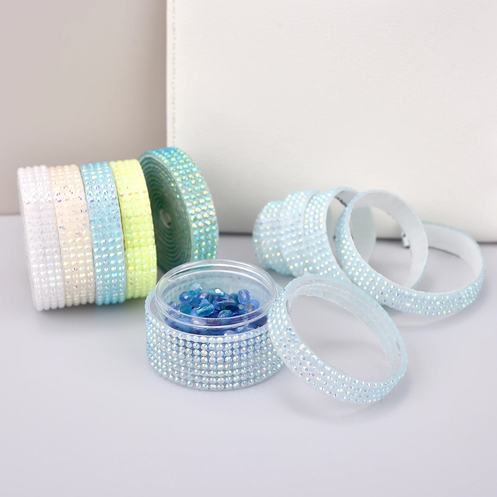 Rhinestone tape in lovely light pastel colors that is 0.9cm wide and 91cm long. Available in twelve different shades.