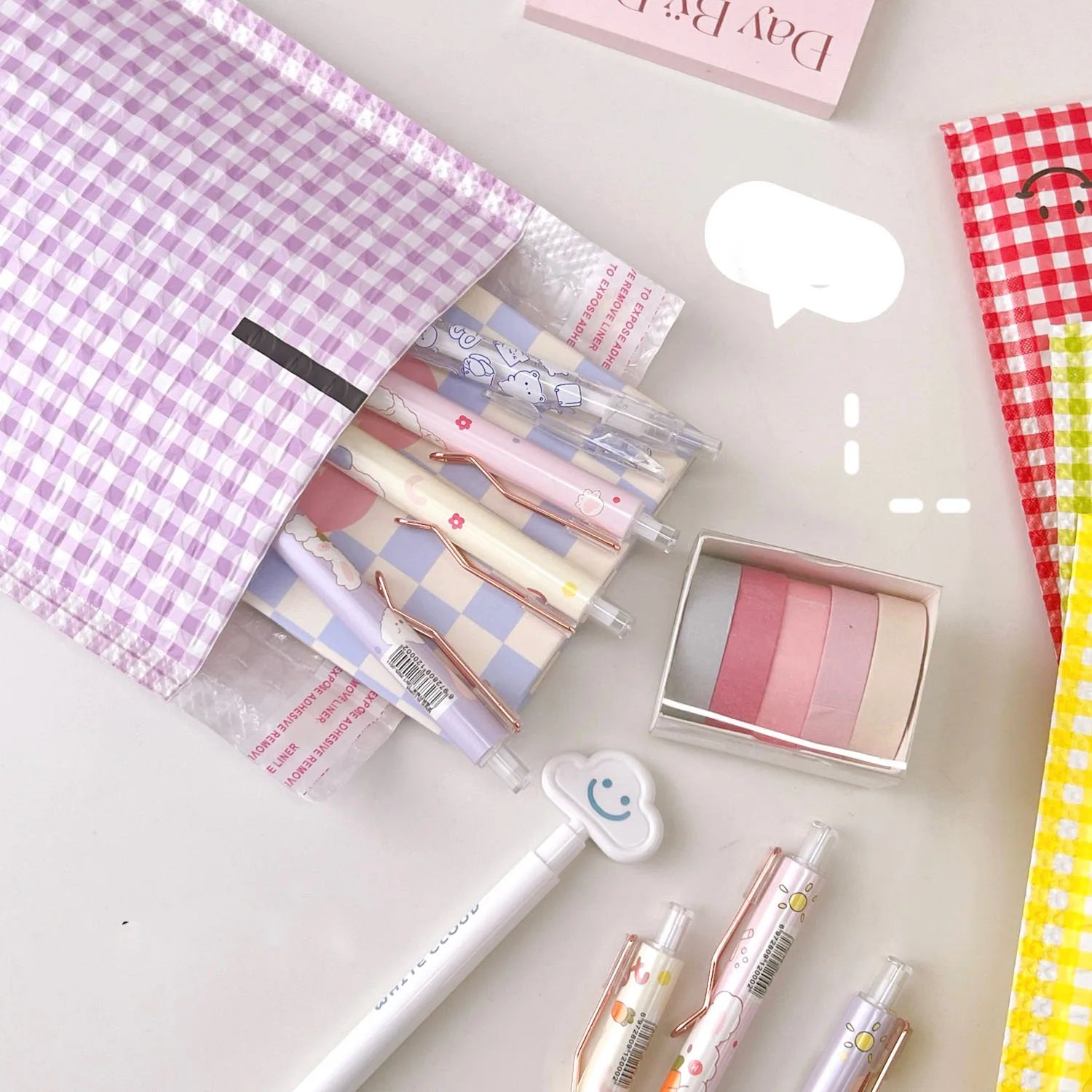 10 padded envelopes, checkered in different colors, measuring 24x15cm. Large envelopes to send with. The envelopes have bubble wrap inside and plastic on the outside with a glued edge.