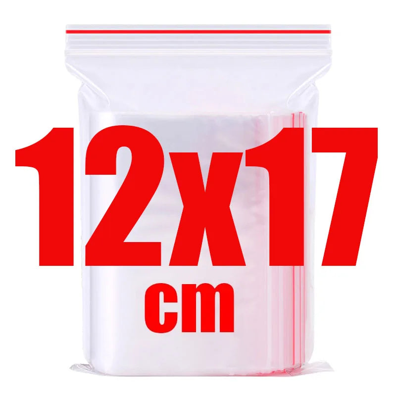 Pack of 200 zip lock bags that can be chosen from nine different sizes. Bags that are transparent with a red border at the top of the bag. Bags to store, sort and send smaller items in.