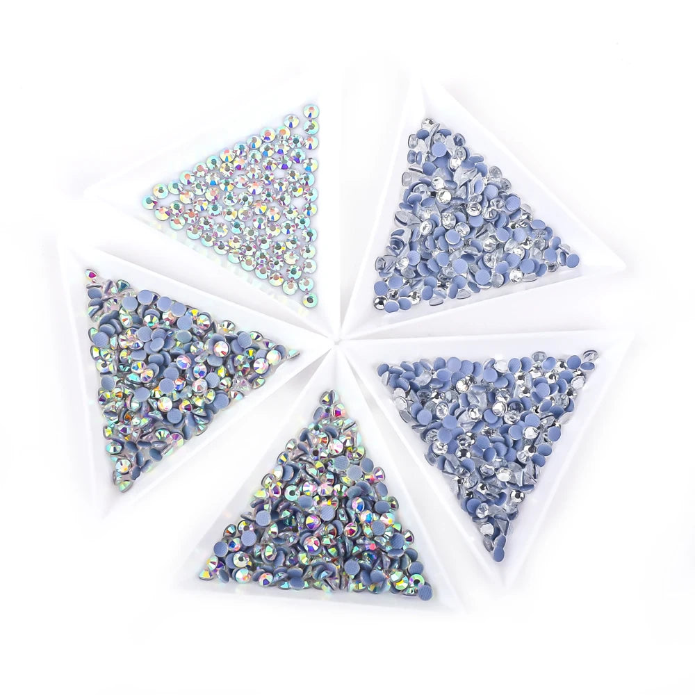Rhinestones with a flat back and a faceted front in the colors crystal and crystal, you can choose packaging in 5 different sizes. You can find the size in a table below and the quantity in the package is according to the size