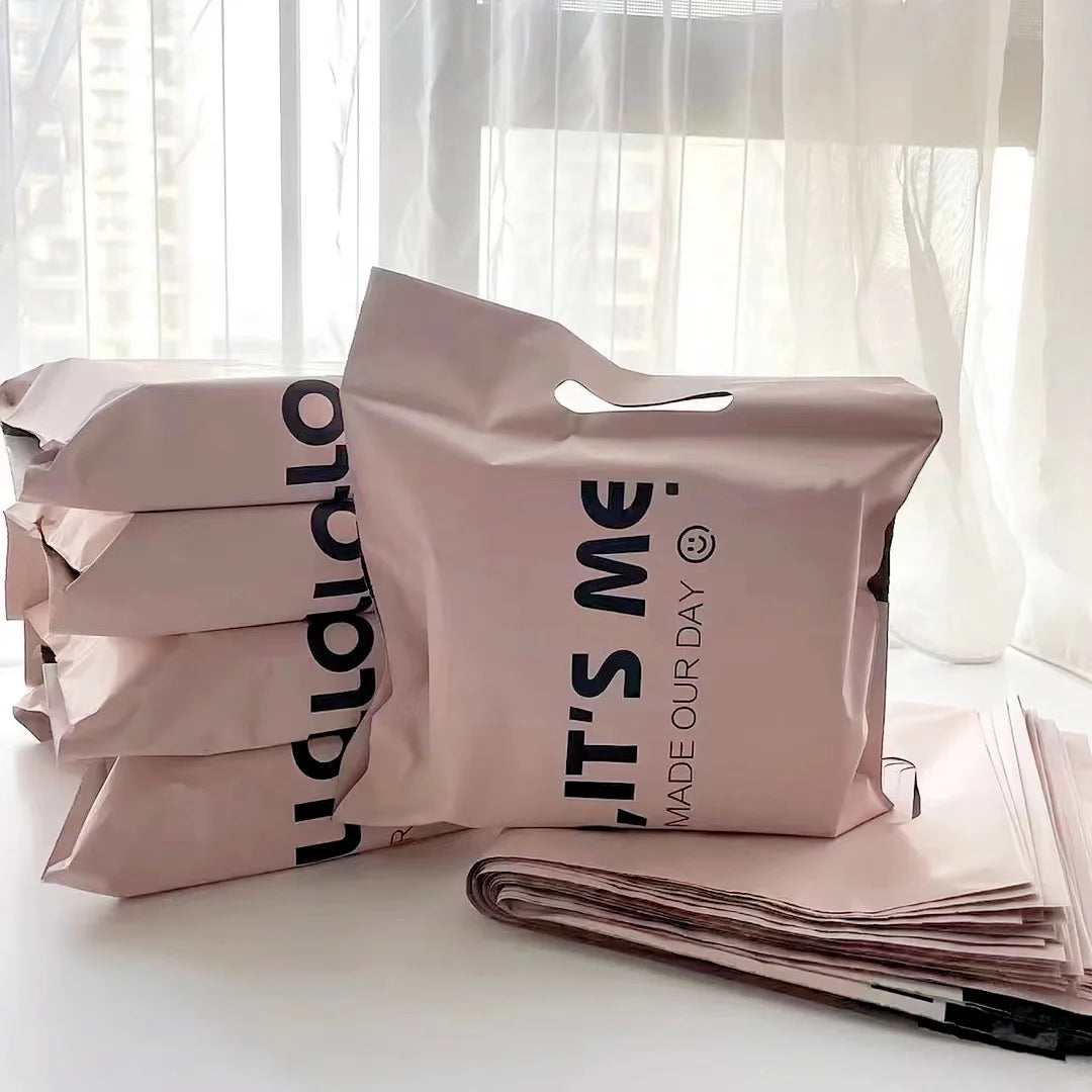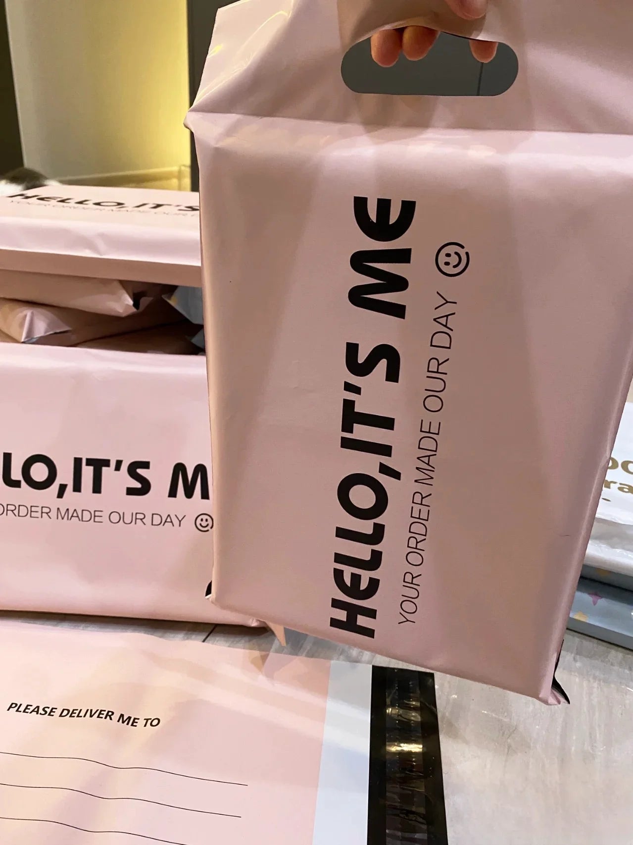 20st Fraktpåsar i Ljusrosa färg med svart text, påsar att man använder för att frakta varor i. Påsarna har en färdig klistrad kant längst upp så man enkelt kan fästa ihop påsarna. De kan väljas bland två stycken olika stora.