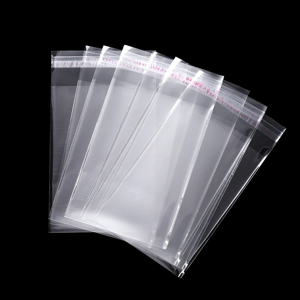 Förpackning med 100st cellofan påsar i genomskinlig plast som har en färdig klistrad kant längst upp så man enkelt kan ta bort pappret som sitter över klistret och sen vika ner kanten för att stänga påsen. Har bra hållbarhet i klistret så man inte behöver oroa sig för att påsen ska öppna sig. Finns många olika mått att välja mellan.
