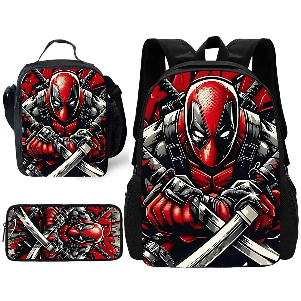 3set med ryggsäck , mindre väska och pennfodral med motiv från Marwel. 3set som är perfekt att ha inför skoldagen då man har ryggsäcken och fodral med pennor samt en liten väska man kan ha till ex gympa kläder eller matsäck. Ryggsäcken är 39x29cm stor och de finns 4 olika Marwel motiv att välja på.