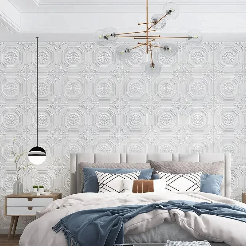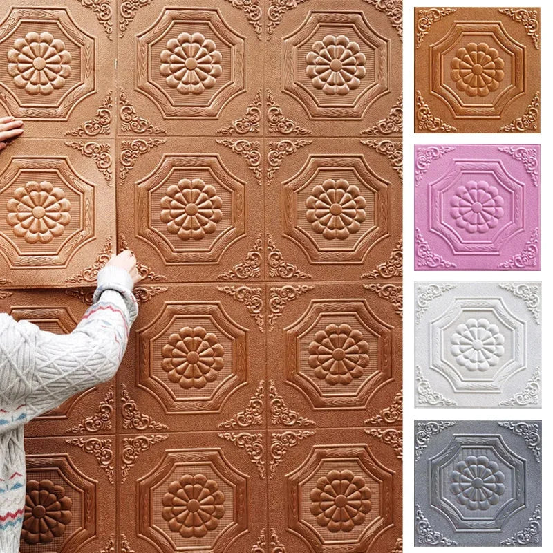 Självhäftande 3D vägg dekor plattor med mönster 35x35cm stora och är i material pvc. Kan välja bland färgerna vit rosa Bronz och grå. Plattorna har färdig klistrad baksida så de är bara att fästa plattorna . Plattorna är vattentåliga . de är 10st plattor per förpackning. För mer information se under specifikationer.