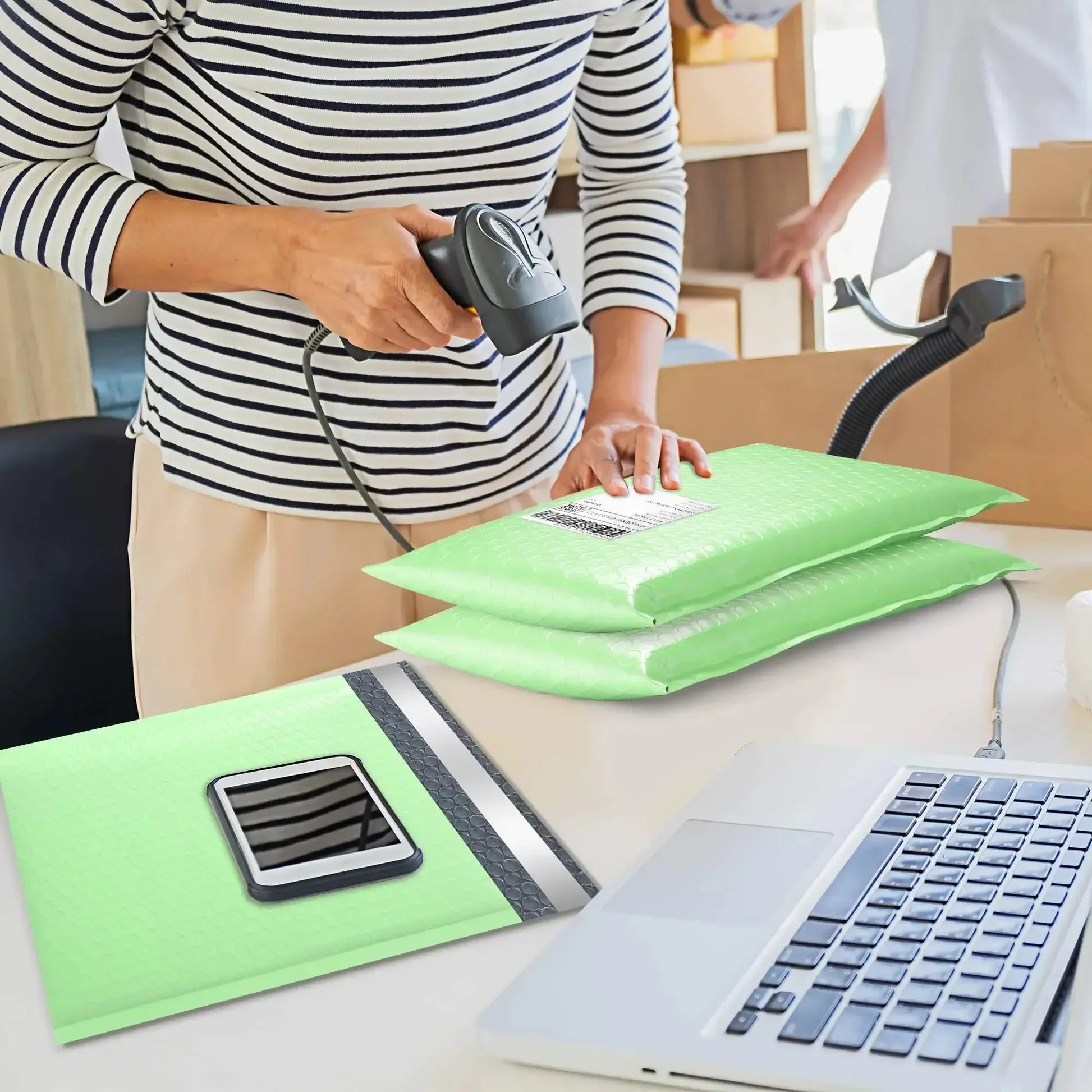 50-pack med vadderade kuvert att förvara och skicka saker med. Kuverten har bibbbelplast på insidan och en plast utanpå. Kan väljas i olika färger Grön Rosa Lila Blå Gul vit svart ljusrosa Mintgrön. Och de finns 5st olika mått på kuverten.