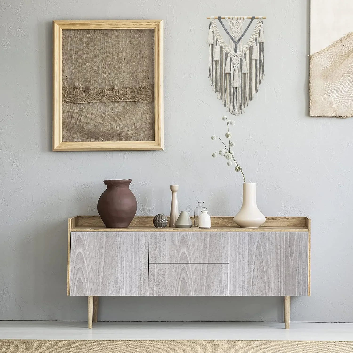 Dekor plast/ tapet med motiv som ser ut som träskivor i grå nyans. Du kan använda den på väggar dörrar bord skåpluckor mm. Man tar bort pappret som sitter över klistret och sen fäster dit den, man behöver ha en slät av torkad yta innan man fäster dit tapeten.
