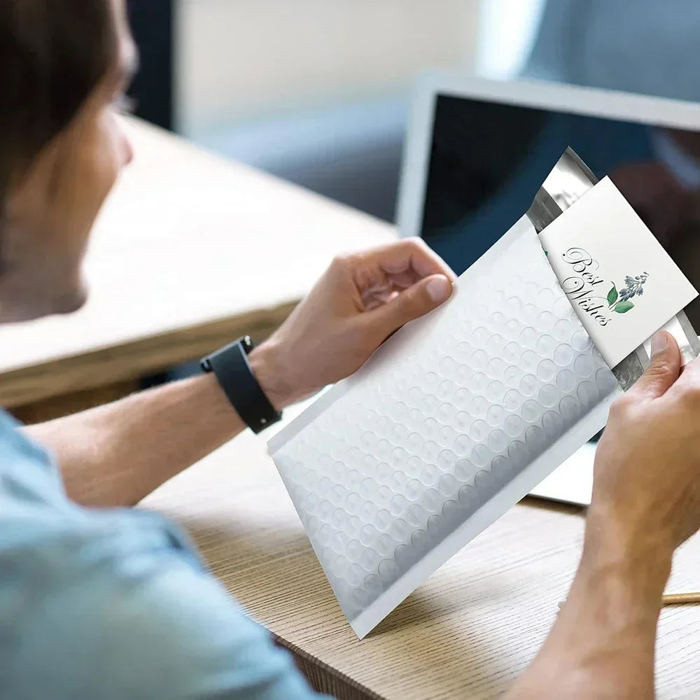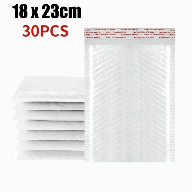 Vita frakt påsar vattentäta med bubbelplast insidan täckt med plast utanpå. Välj Förpackningar med 30st eller 50st Fraktpåsar i olika storlekar.