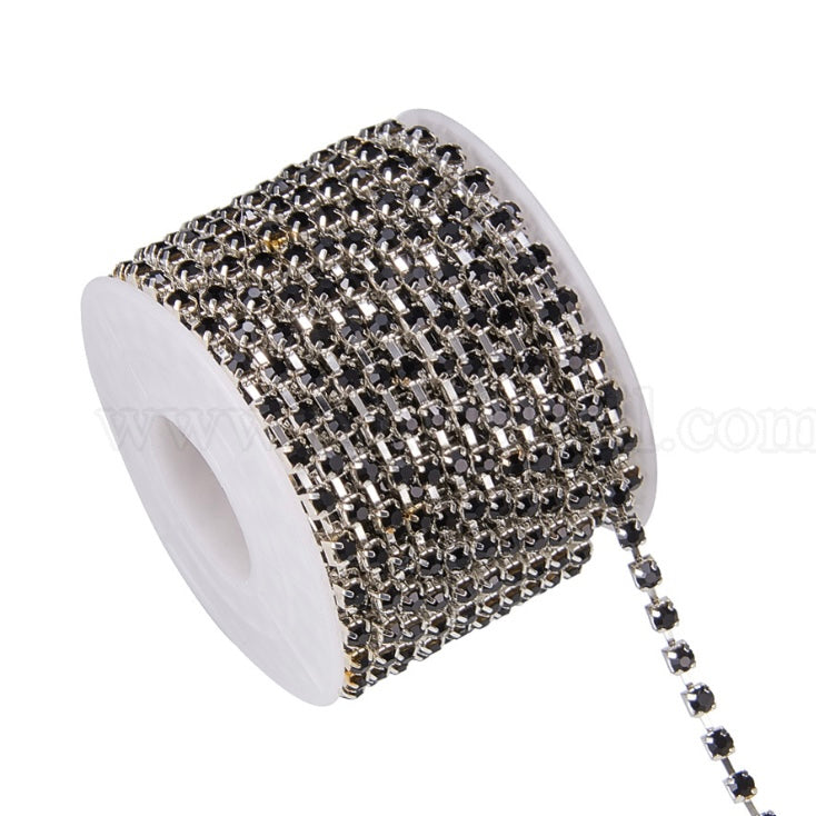 1 meter lång strass kedja med silver färgad kopp kedja med svarta strass stenar 3,1mm bred