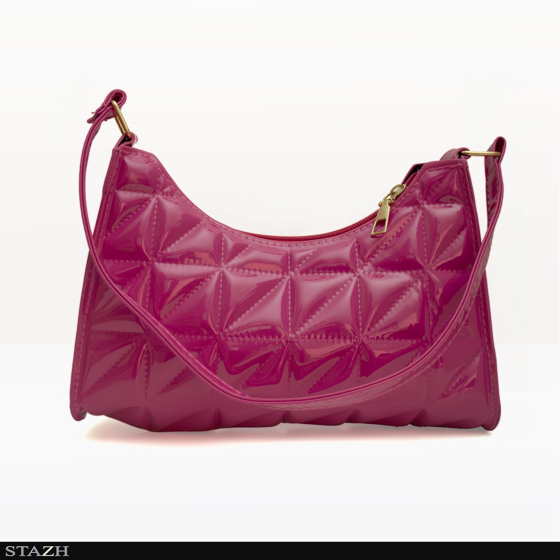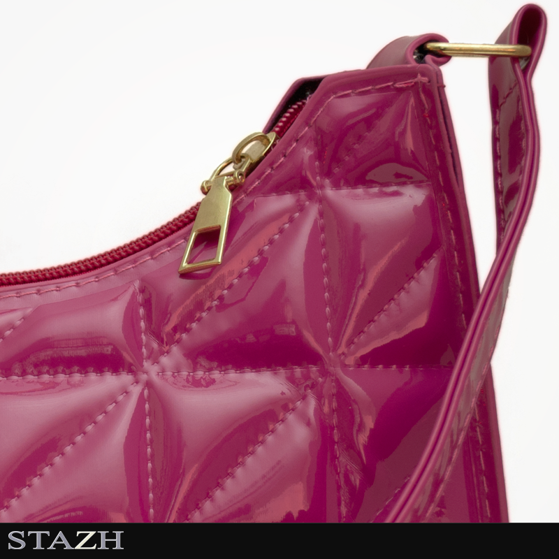 Blank vadderad väska i färgen cerise med kortare handtag och dragkedja.