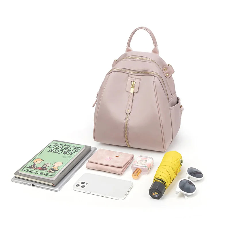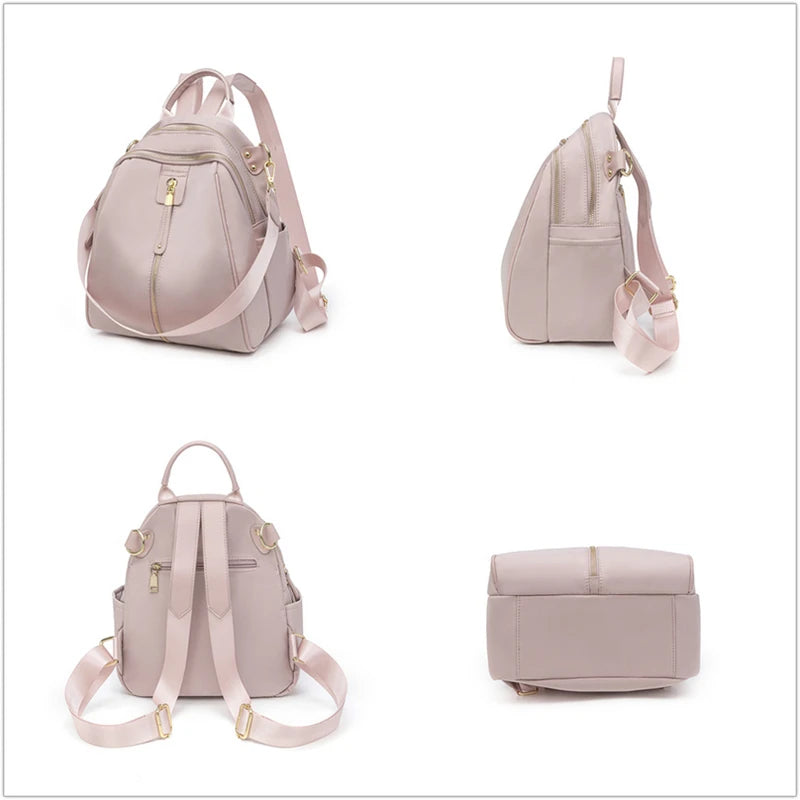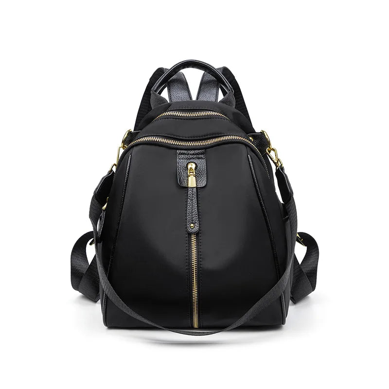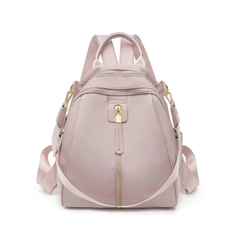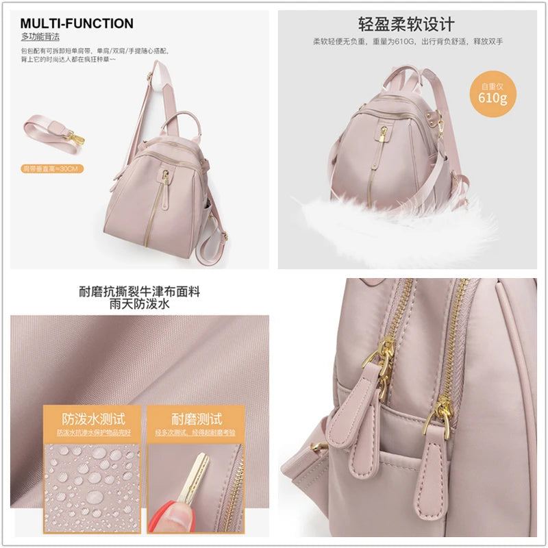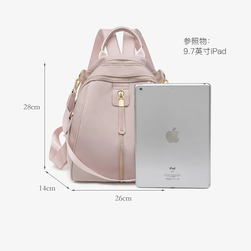 Lyxig Designer ryggsäck i fin design och hög kvalite av oxford och polyester med metall dragkedja i ljusguld och färger på väskan finns i Svart Rosa eller Grå i stl på 28cmx23cm. En väska för dom som gillar de extra.